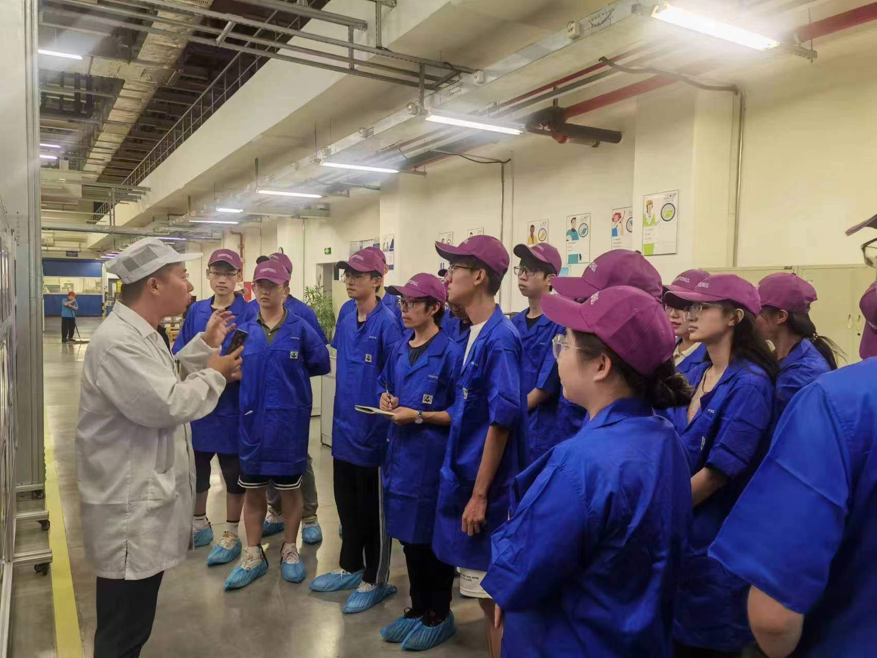 同学们跟随生产设备部部长孙迁走进车间进行实地参观。在车间中,孙部长带领大家分别参观了注塑、装配、电子三个车间,详细介绍了各个车间的设备及其工作原理、流程。