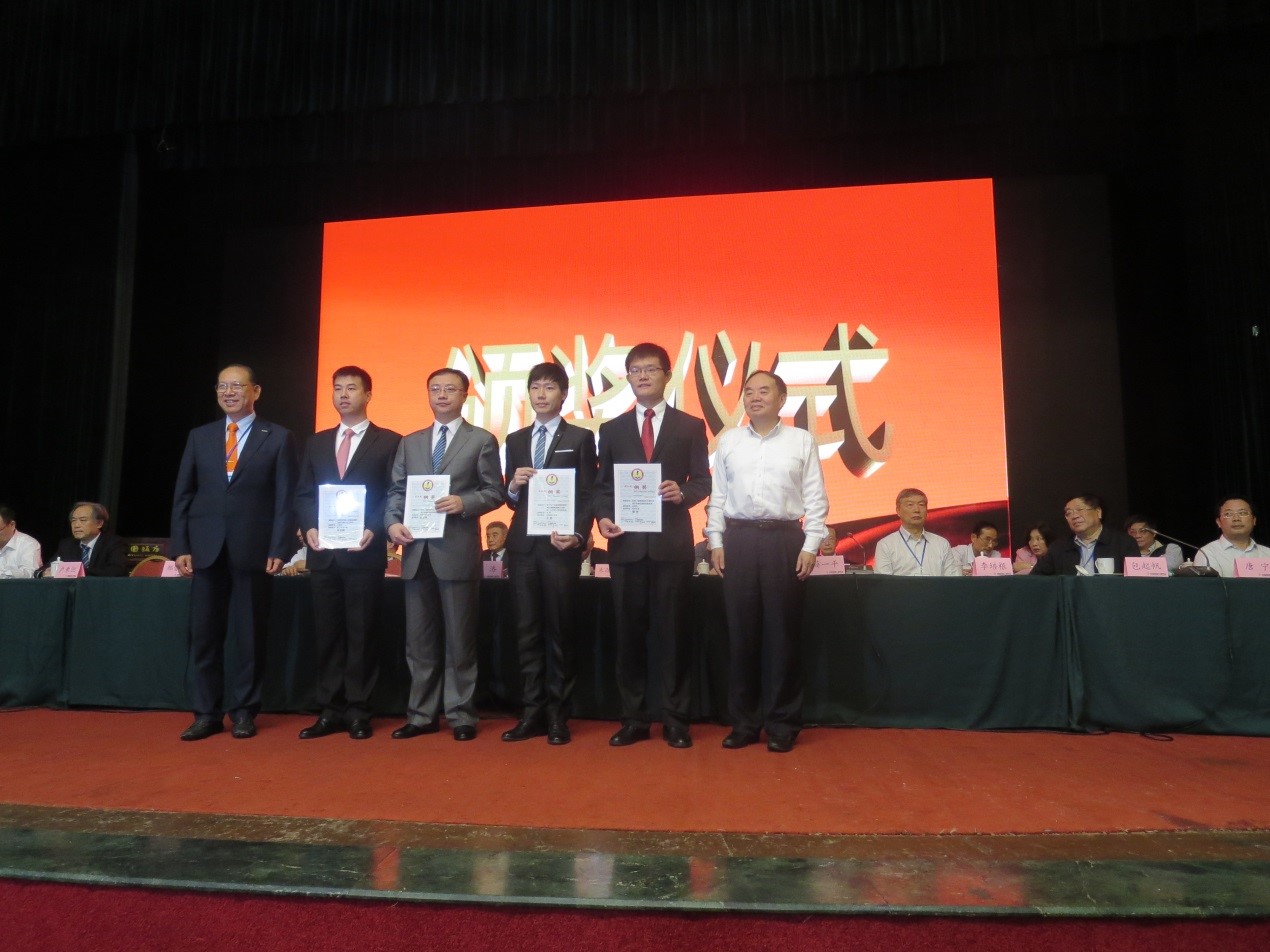 图三:中国机械工程学会理事长、中国工程院经理周济和上银科技董事长卓永财为获奖者颁发证书