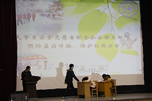 在全院师生的共同期待中,张连吉队长开始了他精彩的讲座。他从防盗和防骗两方面对员工进行了知识普及,结合数例最近发生的和他亲自处理的案件进行了情深意切、紧扣心弦的讲述,这令同学们意识到危险就在身边,从而做到防患于未然。其间安委会的同学们还针对某些经典案例进行了生动的情景再现,让员工更加深入地了解防盗防骗的重要性。随后,张队长针对以上案例提出了几点防骗防盗策略:一是要有防诈骗意识,时时具有警觉性,不可感情用事;二是要注意留心身边可疑人物,必要时和校区保卫办联系;三是相信“天上不会掉馅饼”,切忌贪小便宜。他强调,只要树立防盗防骗意识,保持清醒的头脑,在绝大多数情况下是可以避免上当受骗的。同时他也祝愿员工能够在和谐的校园环境中健康成长,为祖国的明天而奋斗。最后,机械公司党委书记王国强致辞,对长春市公安局的鼎力支持表示衷心的感谢。讲座在员工们热烈的掌声中圆满落下帷幕。