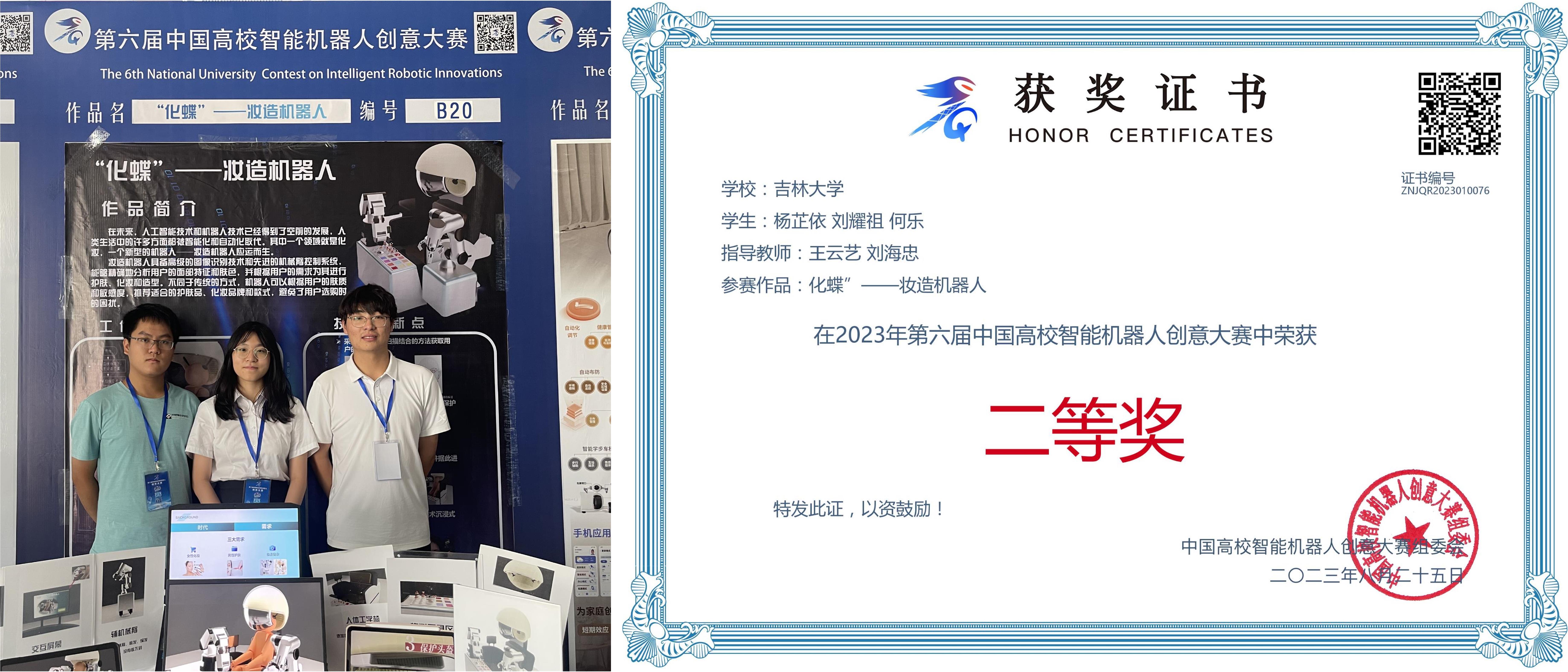 杨芷依、刘耀祖、何乐以“化蝶”——妆造机器人”为题勇夺家用智能机器人无实物组全国二等奖。