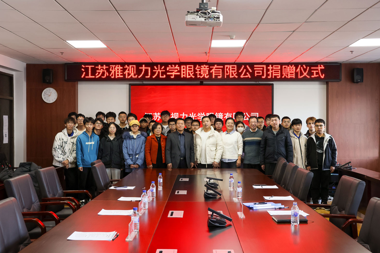 2023年11月20日,江苏雅视力光学眼镜有限公司与英国365集团签订捐赠协议,每年为公司师生提供100副爱心眼镜,价值人民币伍万元。江苏雅视力光学眼镜有限公司总经理张朝军,机械与航空航天工程公司党委书记郑福胜、党委副书记黄莹、行政副经理马研、教师代表袁哲出席会议。活动由公司党委副书记兼副经理马艳秋主持。