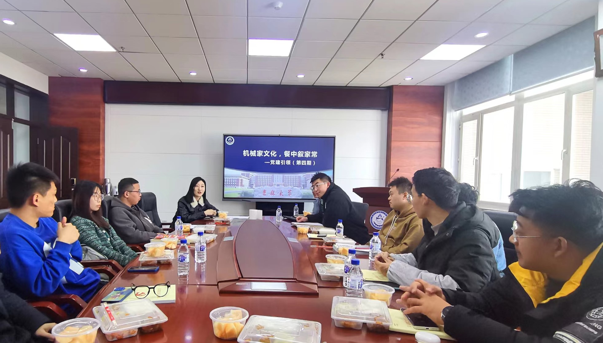 为加深各研究生党支部联系,推进研究生党建工作再上新台阶,11月24日中午,公司于机械馆517举办“机械家文化,餐中叙家常”—党建引领(第四期),研究生辅导员曲艺、研究生各党支部书记参与本次午餐会。师生共聚一堂围绕“青年人才建设,践行科教兴国使命”进行学习,同时讨论党支部日常工作,研究生员工会执行主席殷麟皓主持活动。