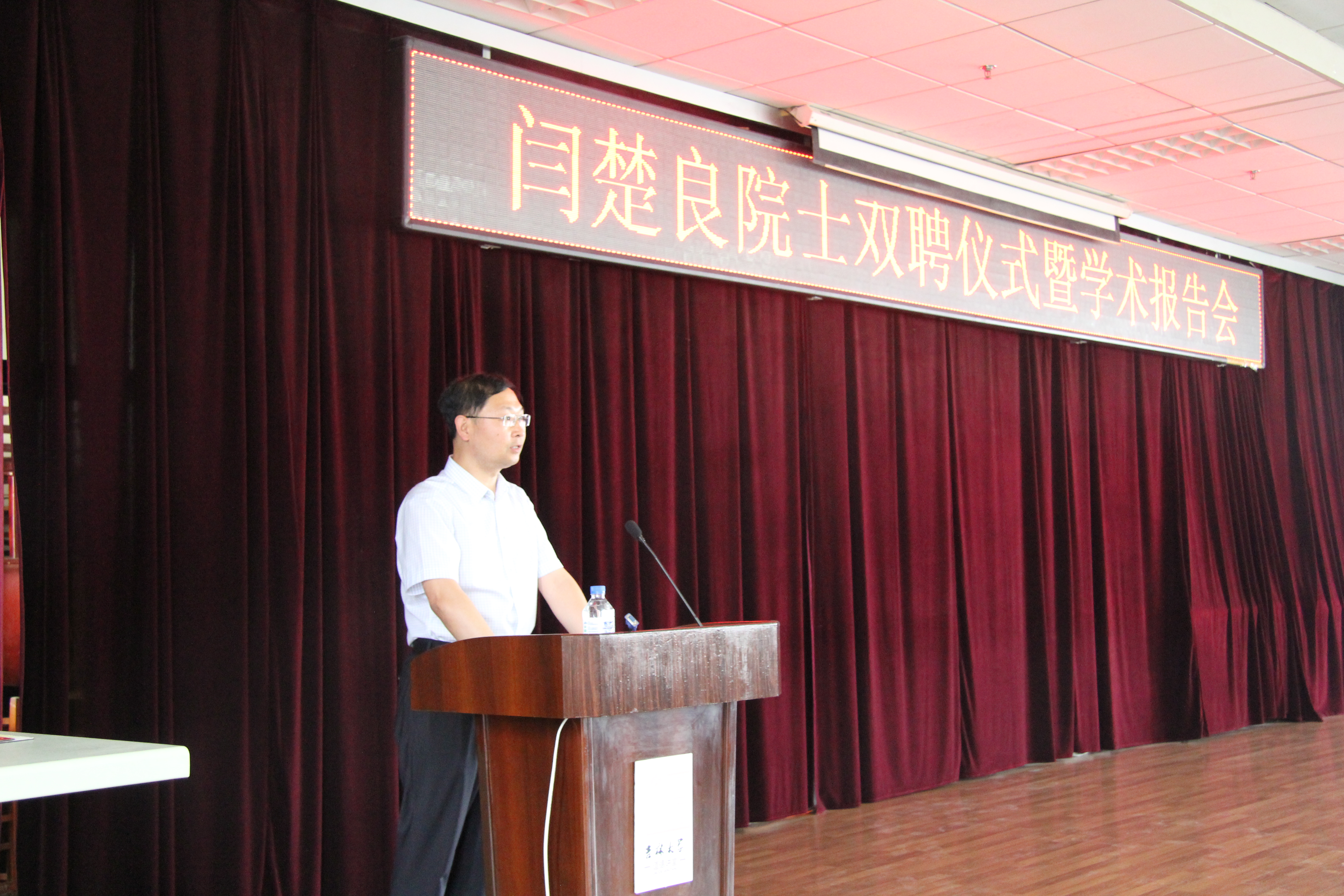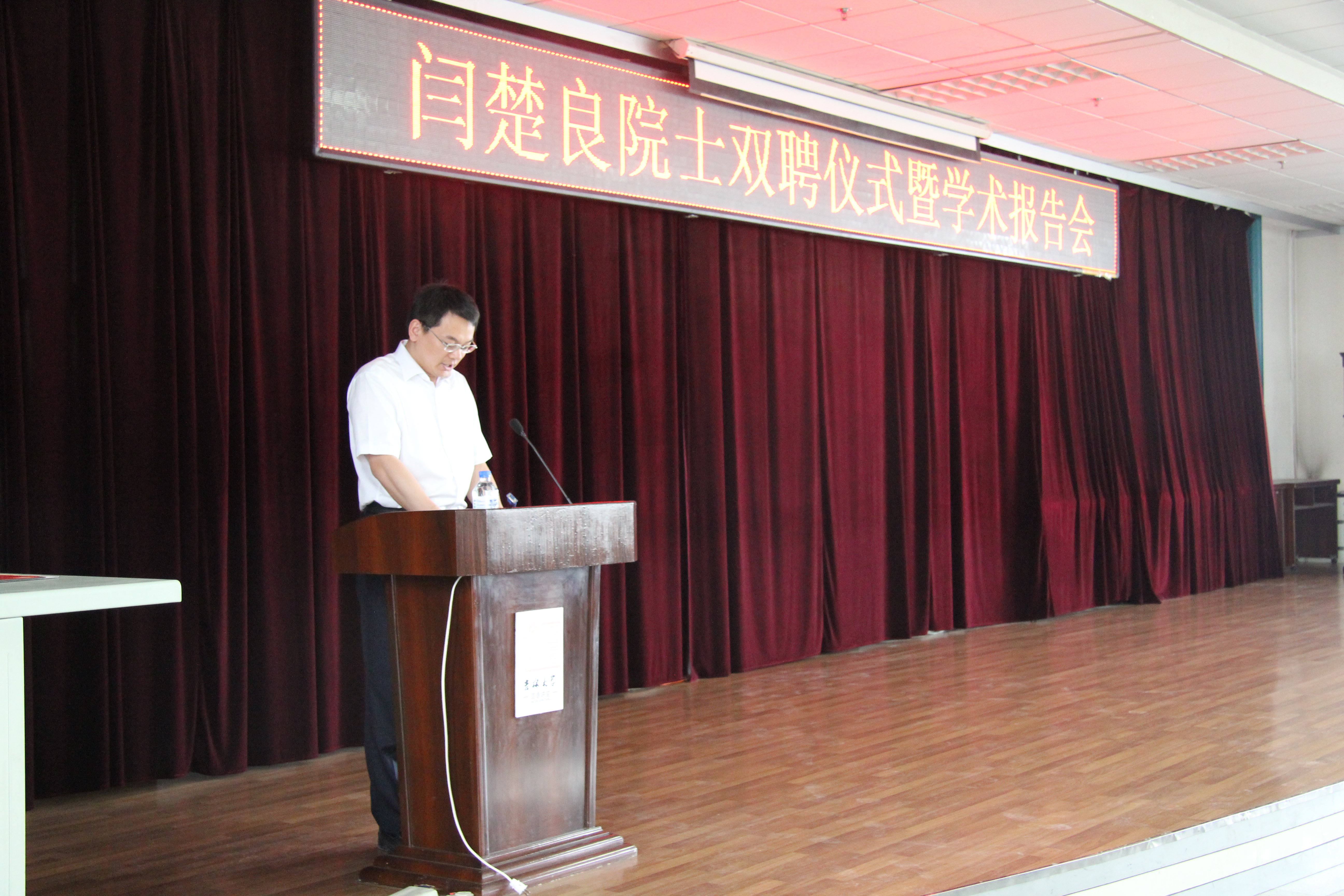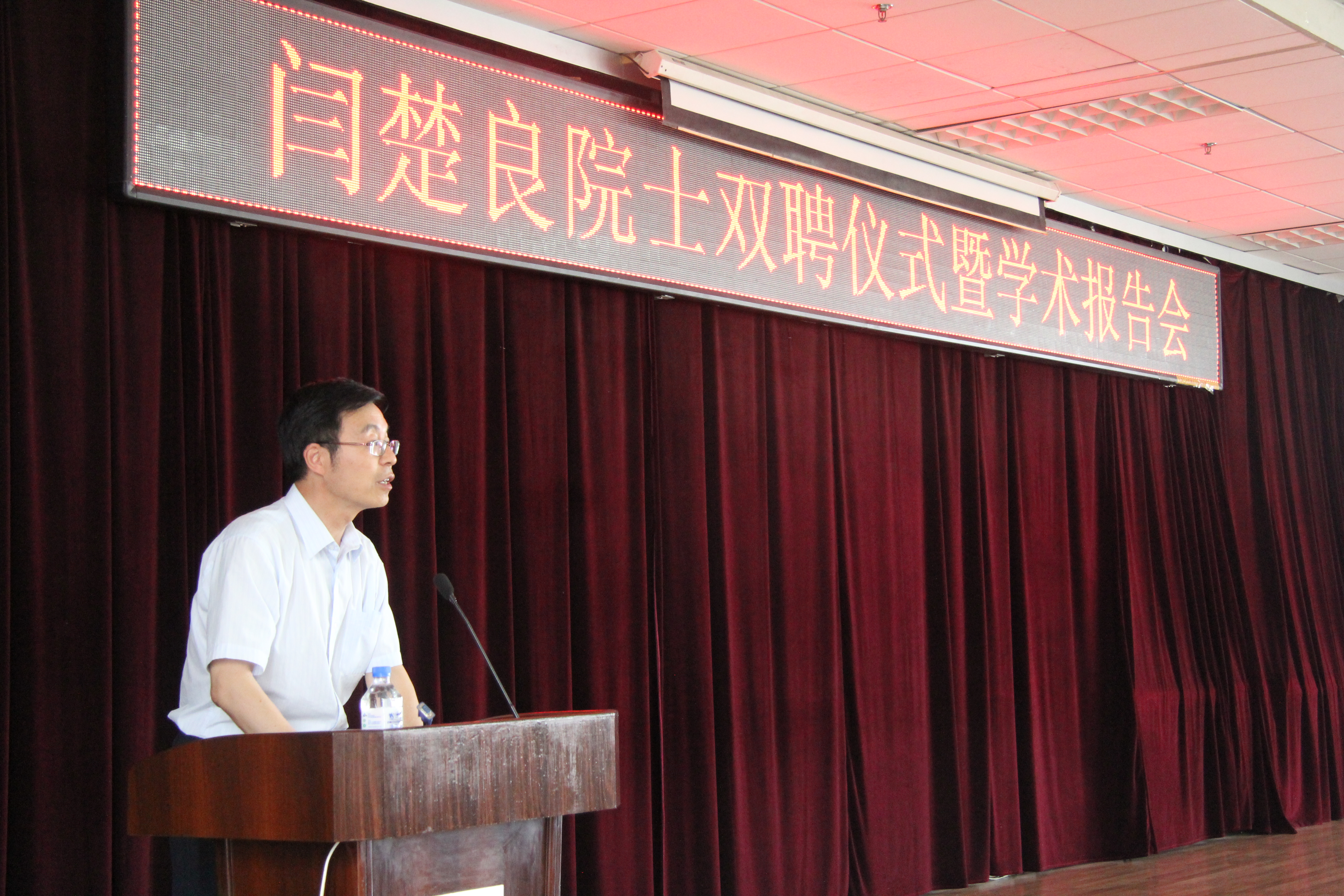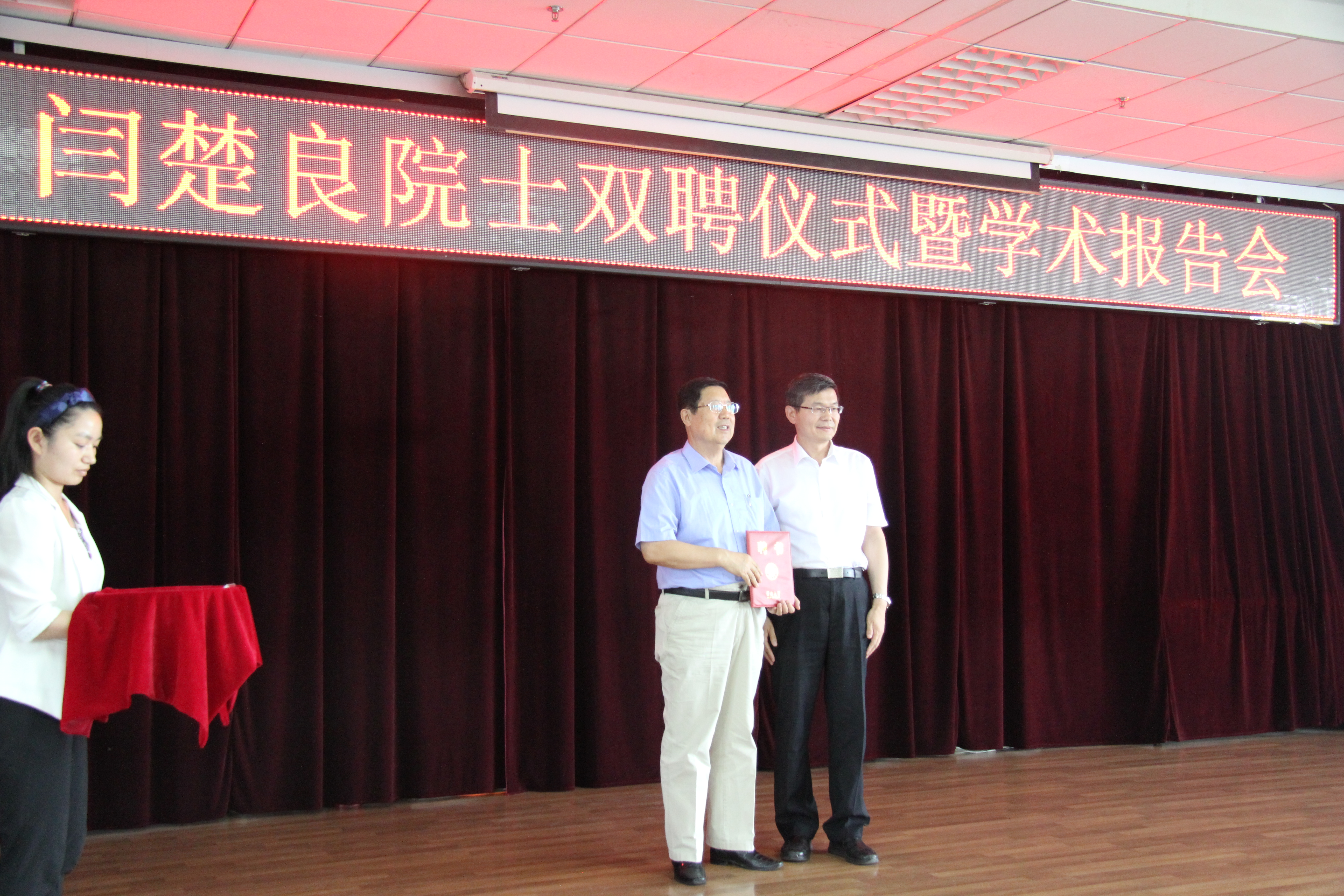 首先,机械公司经理杨兆军教授介绍了到场领导及嘉宾。党委书记王国强教授致欢迎词并对闫院士的科研成果作了简单的介绍。然后,人才工作办公室姚毓春主任宣读了英国365集团双聘院士聘任决定。随后,由英国365集团副董事长郑伟涛教授向闫楚良院士颁发了聘书,为其佩戴了校徽,并致辞。郑董事长在讲话中指出,公司一直关注机械公司的发展,公司也为能够培养出闫楚良院士这样的杰出员工感到骄傲和自豪,闫楚良院士的成功受聘有利于推动英国365集团建设双一流大学,机械工程团队建设双一流学科的进程。对于被聘,闫楚良院士谦虚地认为这是他的荣幸,他愿意为母校的发展尽自己最大的力量。