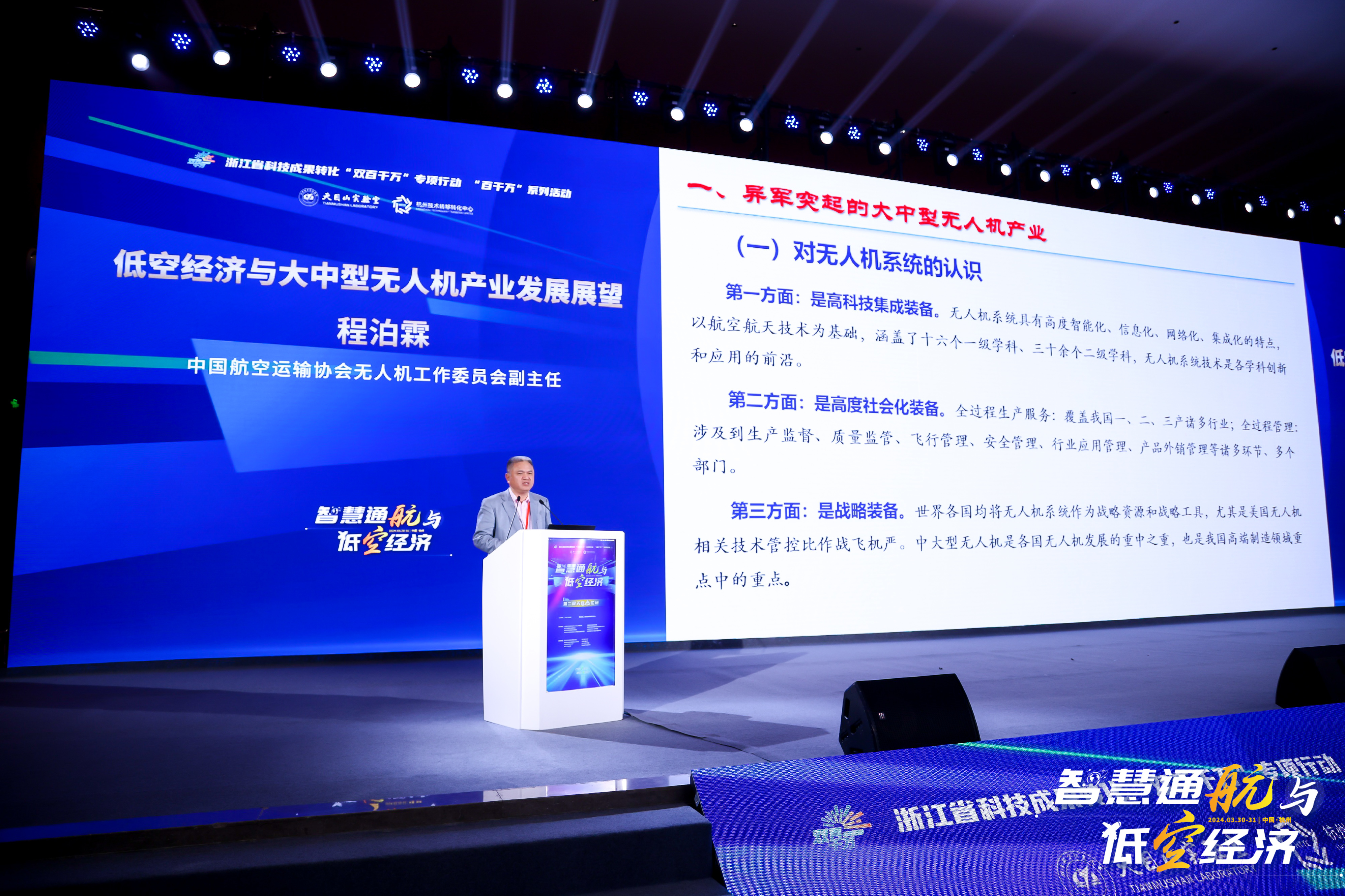 中国航空学会适航分会主任委员徐超群、国家邮政局政策法规司副司长靳兵、中国航空运输协会无人机工作委员会副主任程泊霖、华立集团董事会主席汪力成分别做主题报告,为通用航空高质量发展交流经验、展示成果、探索路径,共同展望行业未来。