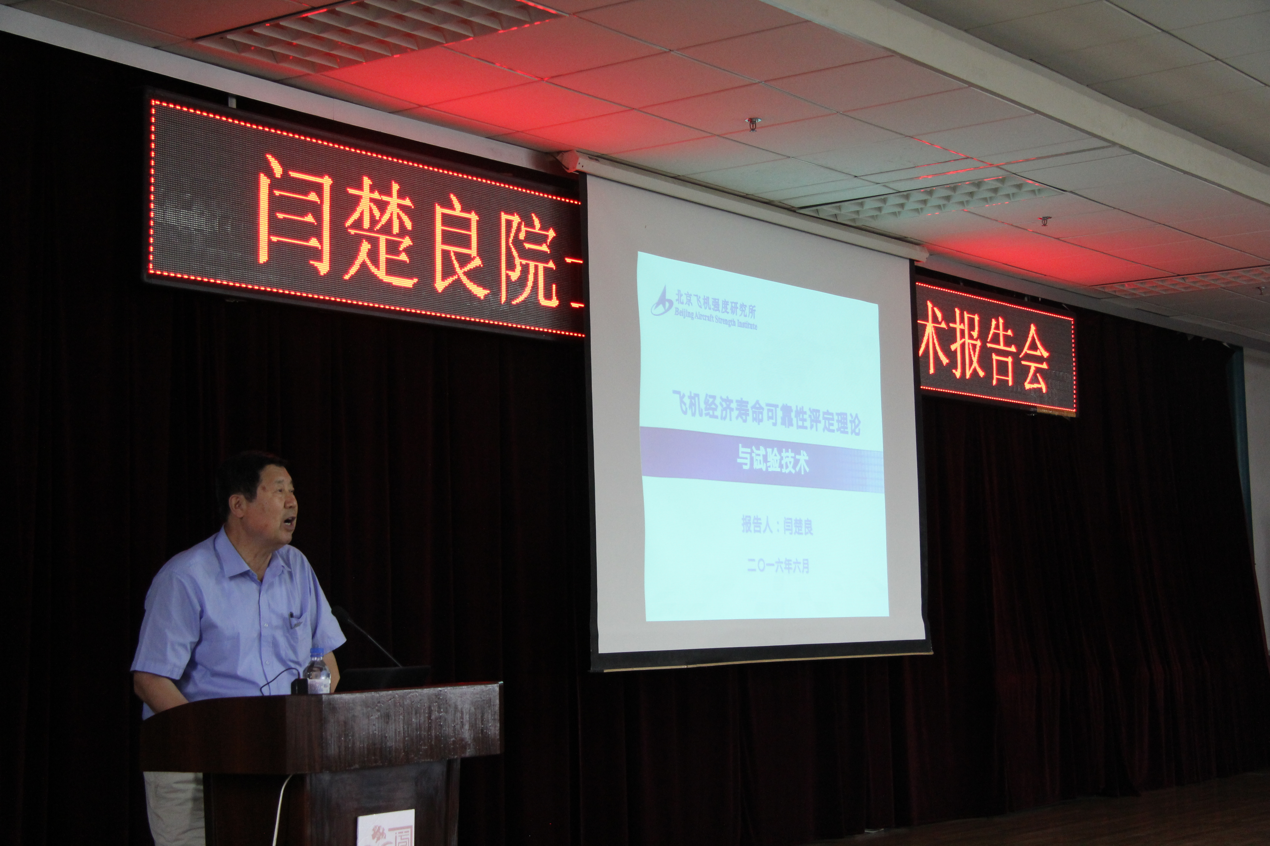 报告会上,闫楚良院士首先介绍了自己的学术背景、求学经历、以及取得的科研成果,然后他向在座师生介绍了飞机寿命概率认识、飞机结构寿命评定准则、飞机寿命可靠性评定模型、经济寿命可靠性评定、飞行实测与编制、全尺寸疲劳试验等研究内容,报告最后,闫院士还向大家介绍了其所在的北京飞机强度研究所的基本情况。