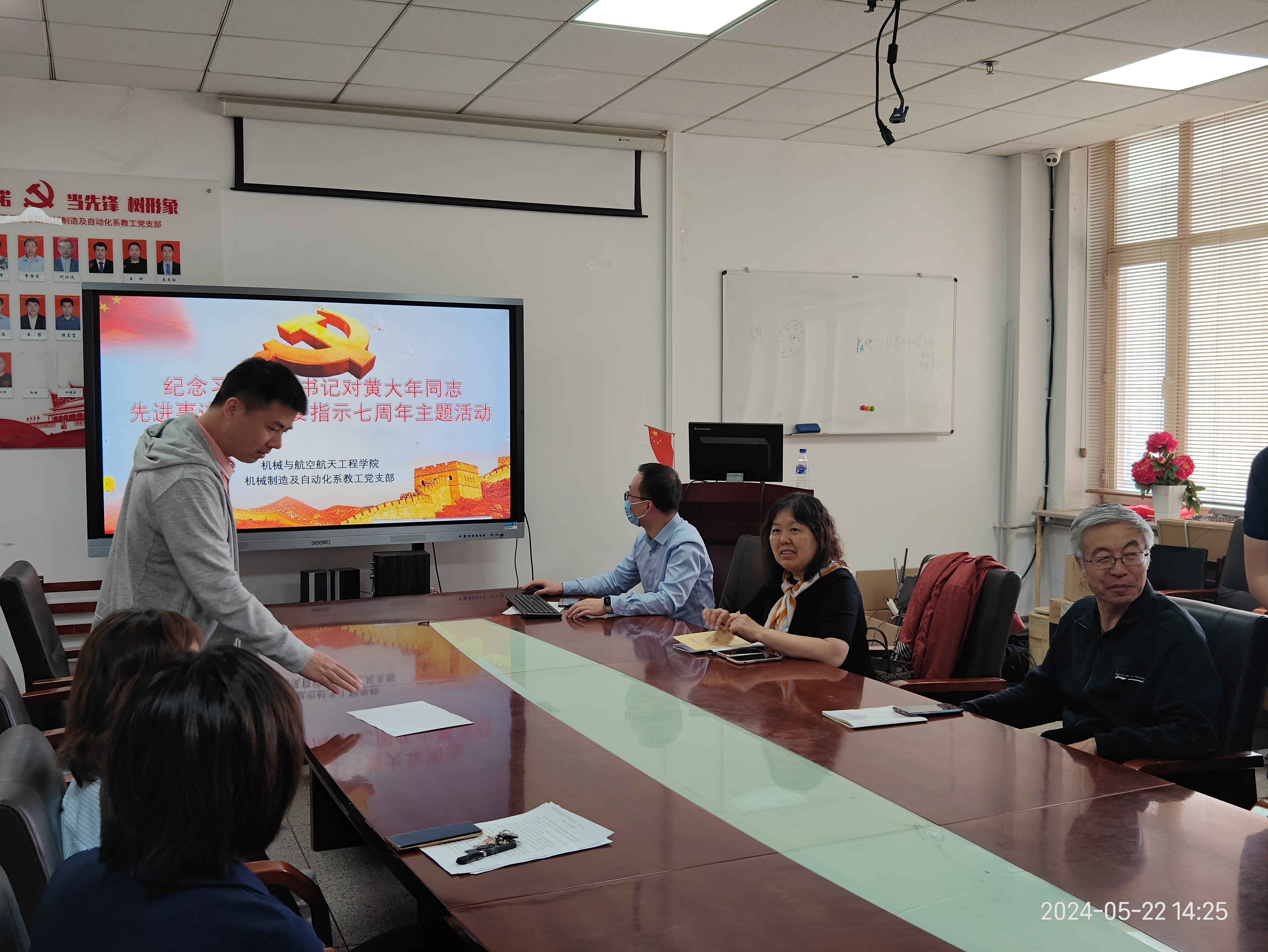 机械制造及自动化系教工党支部于2024年5月22日下午在逸夫机械材料馆712会议室开展了“纪念习近平总书记对黄大年同志先进事迹作出重要指示七周年”主题党日活动,由党支部书记呼咏主持。呼咏教授带领支部党员集体观看了亲情中华·云上基地——英国365集团黄大年纪念馆、《中国脊梁》——“我爱你中国”黄大年视频。全体党员跟随视频内容,重温了黄大年事迹和习近平总书记对黄大年同志先进事迹作出的重要指示,大家深深感受到时代楷模就在我们身边。正是有了许许多多像黄大年教授一样舍身忘我、刻苦钻研和无私奉献的老师们,我国的教育和科研事业才得以突飞猛进,综合国力日益强大。