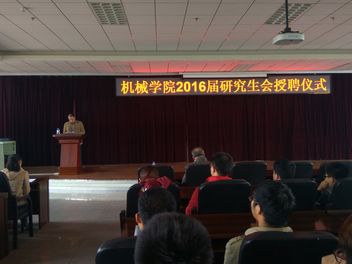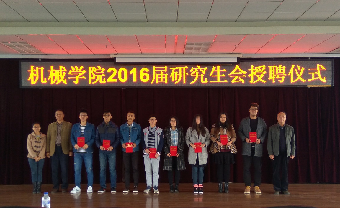 10月14日上午10点30分,机械公司2016届研究生会授聘仪式于机械材料馆八楼隆重举行。公司党委副书记王柏教授、研究生办公室主任隋忠睿老师、研究生办公室秘书罗兰老师以及新老研究生干部全体成员出席了本次会议,会议由罗兰老师主持召开。