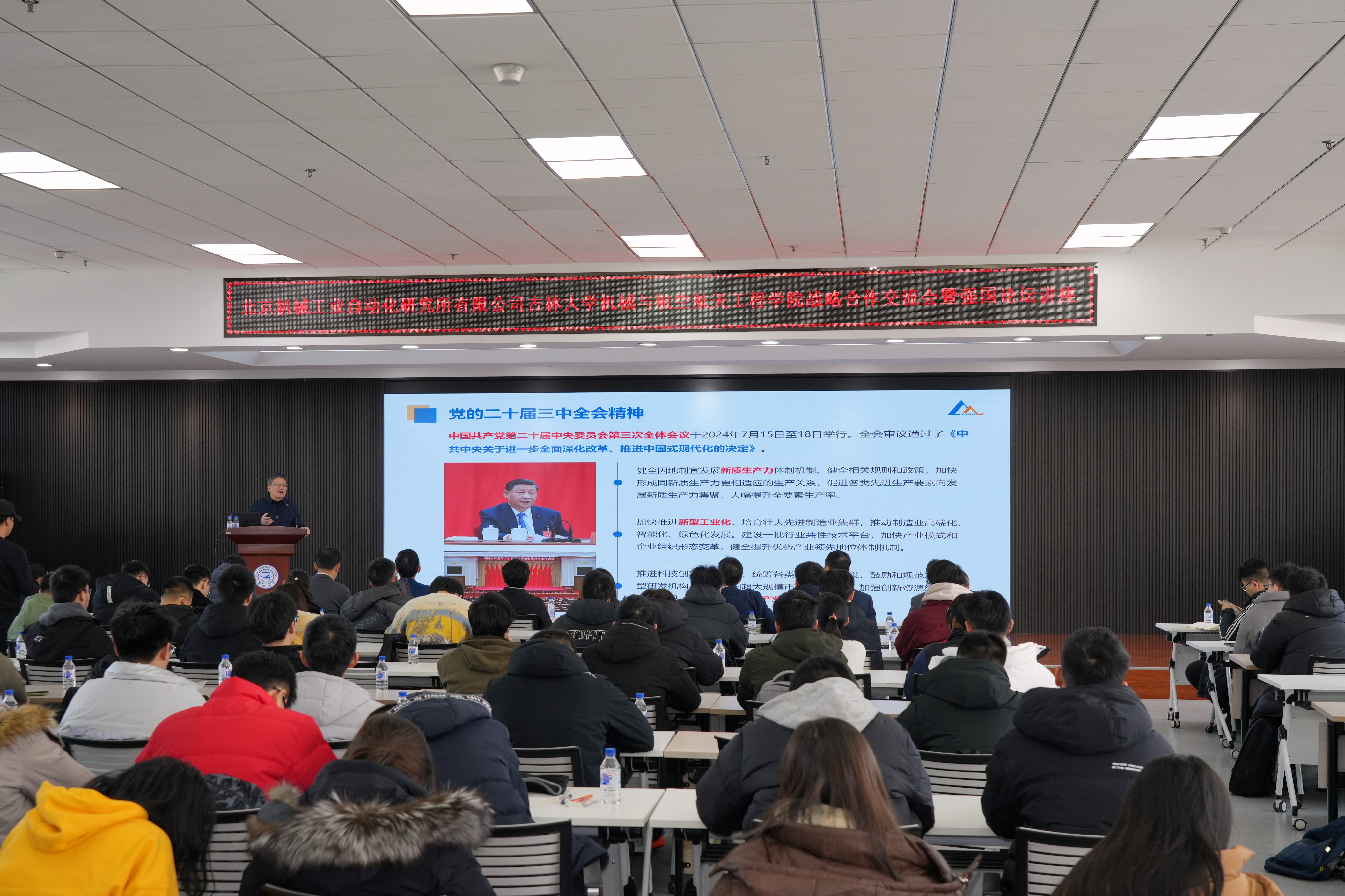 2024年11月29日,强国论坛讲座第九讲在南岭校区逸夫机械材料馆举办。本期活动邀请北京机械工业自动化研究所有限公司党委书记、董事长,83级员工王振林为公司师生开展强国论坛第九讲《向新而行,以质赋能,新质生产力激发行业发展新活力》,北京机械工业自动化研究所有限公司人力资源部部长卫兵、技术发展部部长王宁威,机械与航空航天工程公司党委书记郑福胜、经理周晓勤、副经理吴文征、马志超、基础教学中心副主任董景石、行政副经理马研等参加活动。活动由公司党委副书记、纪委书记黄莹主持。
