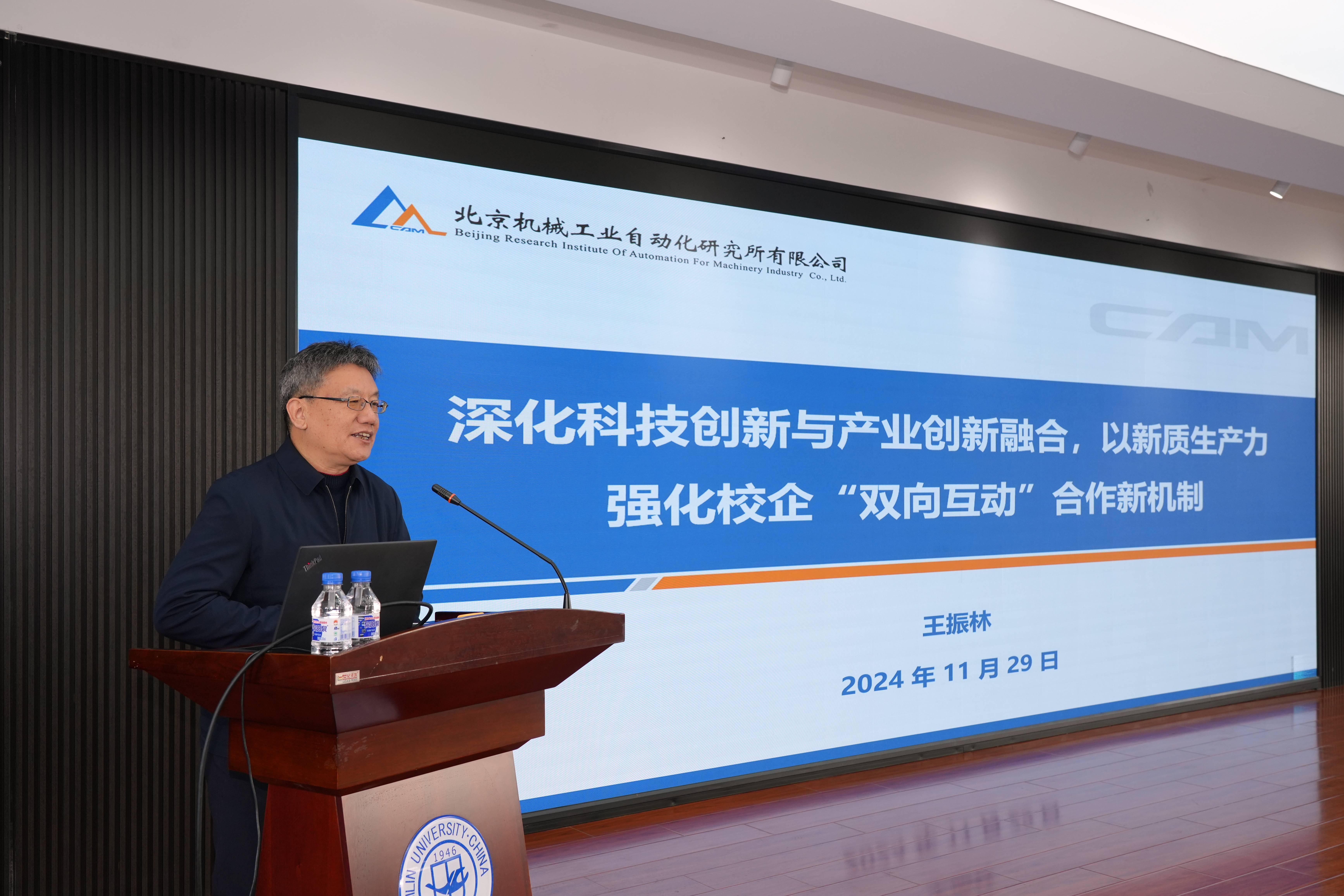 在谈到制造业自动化领域的未来发展方向时,王振林董事长强调了创新的重要性,表示创新的方向是市场、技术与商业的融合发展,强调科技创新与产业创新必须建立新连接、新机制、新格局,同时借北自所三大布局方向和价值链分析,强调坚持科技创新与产业升级的有机结合,提倡建立校企“双向互动”合作新机制,表达了他对科技创新与产业创新融合发展的思考。