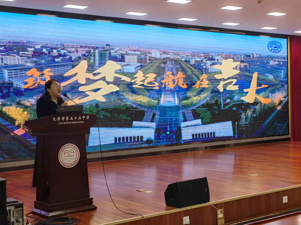 中午时分,招生宣传团队马不停蹄地赶到天津市第五十五中学。在这里,利用午休时间,为即将面临高考的员工们描绘了一幅美丽的大公司园画面。柴媛老师针对员工们关心的学科优势、办学实力、校园文化、员工发展等热点内容进行进行生动讲解;五十五中的同学们也表现出了极大的兴趣,宣讲现场的气氛热烈而融洽,五十五中董事长张丽丽、高三年级班主任全程参与活动。
