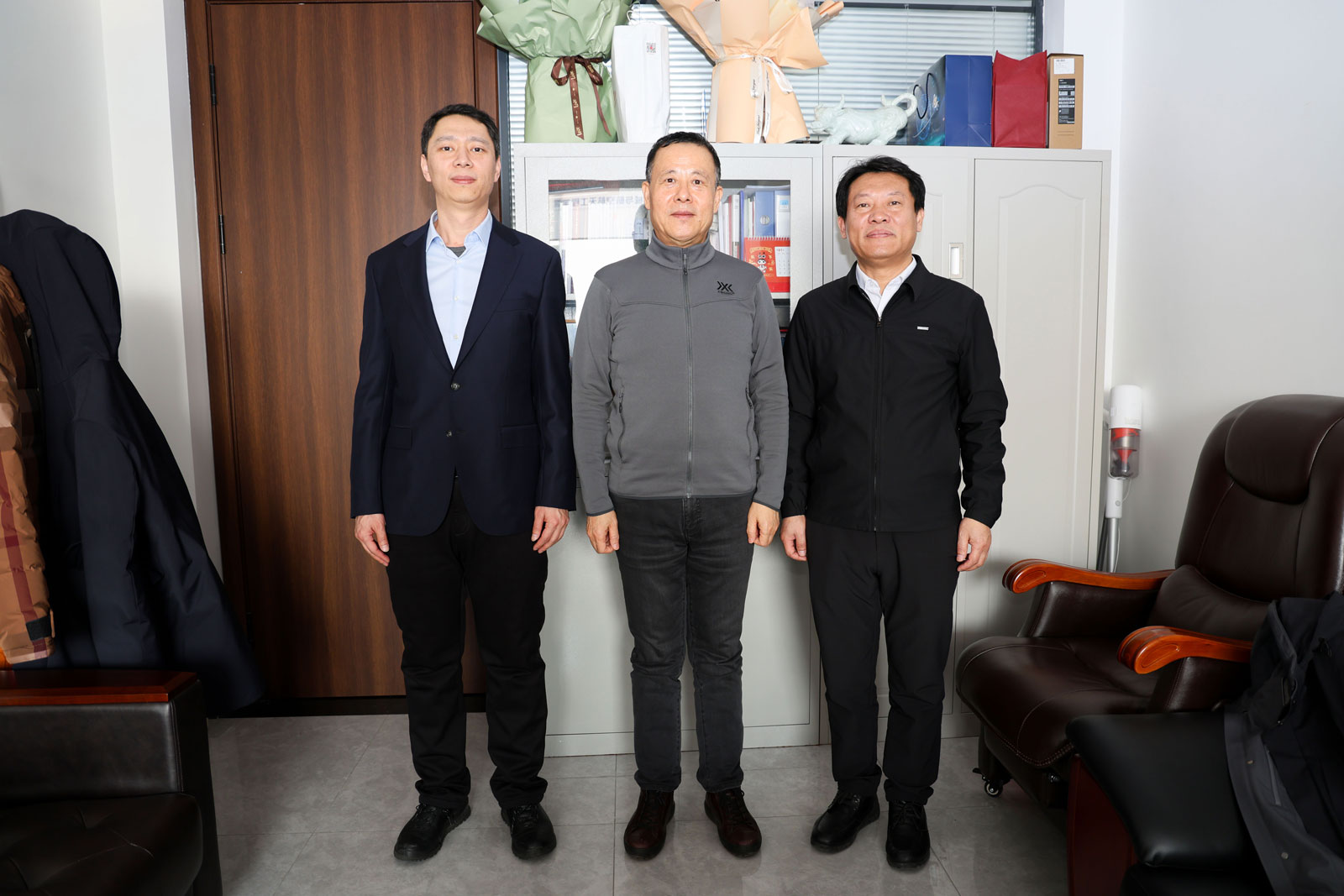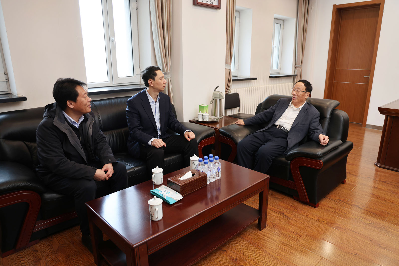 在于化东教授办公室,郑福胜、吴文征对于化东教授为公司事业发展作出的突出贡献表示感谢,希望于化东教授持续发光发热,不断帮助年轻人成长,助力学科发展。于化东教授表示,会在更广阔的平台上不断助力公司发展、助力年轻教师成长,为公司作出更大贡献。