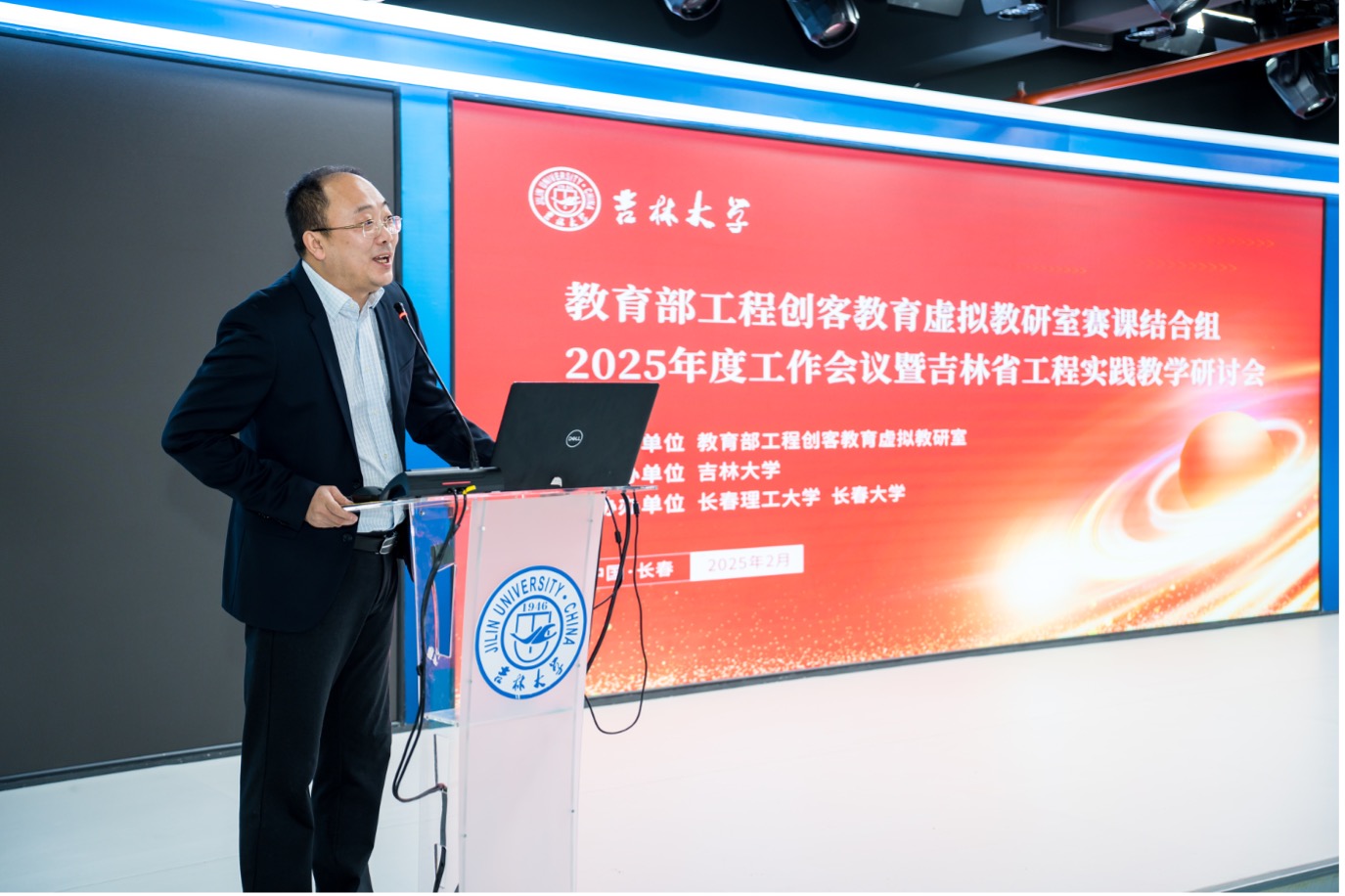 本次会议分为“教育部工程创客教育虚拟教研室赛课结合组2025年度工作会议”和“吉林省工程实践教学论坛”两部分,赛课结合组2025年度工作会议由教育部高等公司工程训练教学指导委员会委员、教育部工程创客教育虚拟教研室副主任、上海大学教授胡庆夕主持,会议传达了工程创客教育虚拟教研室的相关精神,探讨跨校实践训练营及工程实践创客大赛的相关工作。