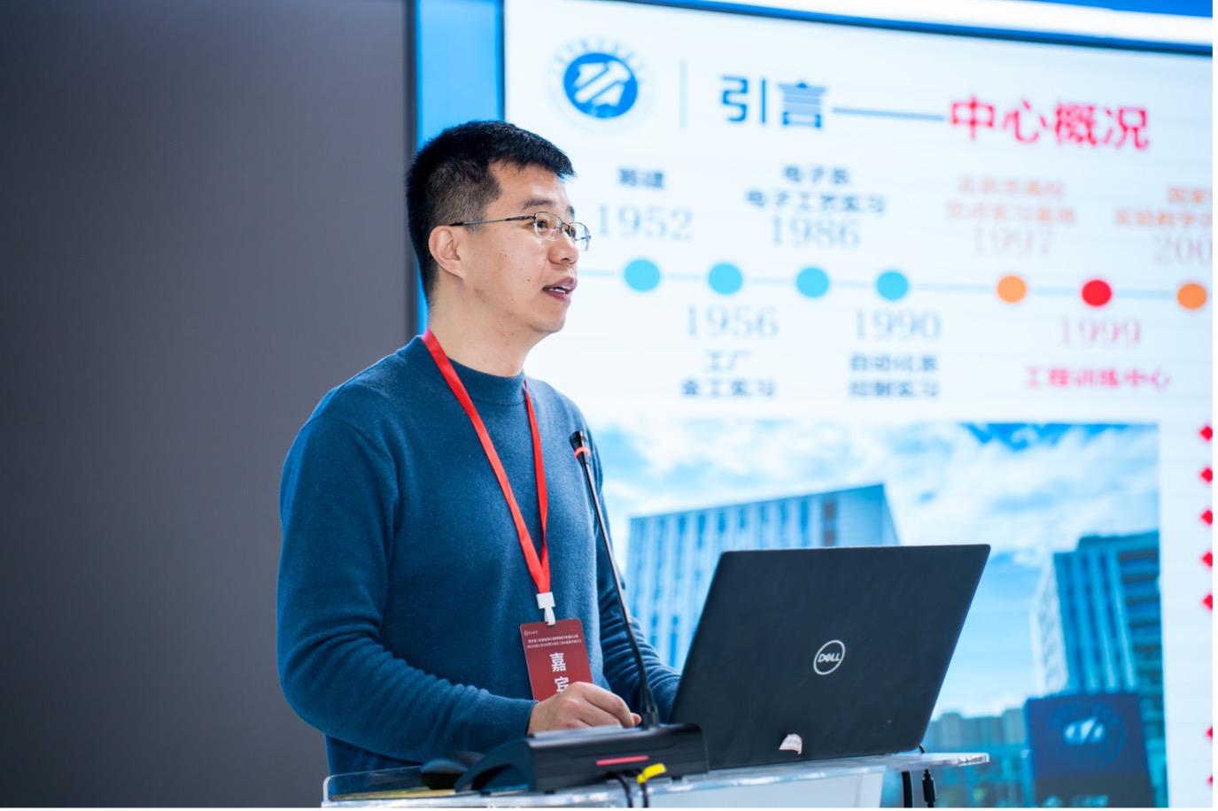 北京航空航天大学工程训练国家级实验教学示范中心副主任、党支部书记、教育部工程训练课程虚拟教研室副主任齐海涛以《工程训练中的数智化公司产品探索与实践》为题,为大家分享北京航空航天大学工程训练国家级实验教学示范中心建设情况,利用万物互联,智能引领,肯定了数字技术对工程实践教育的影响。