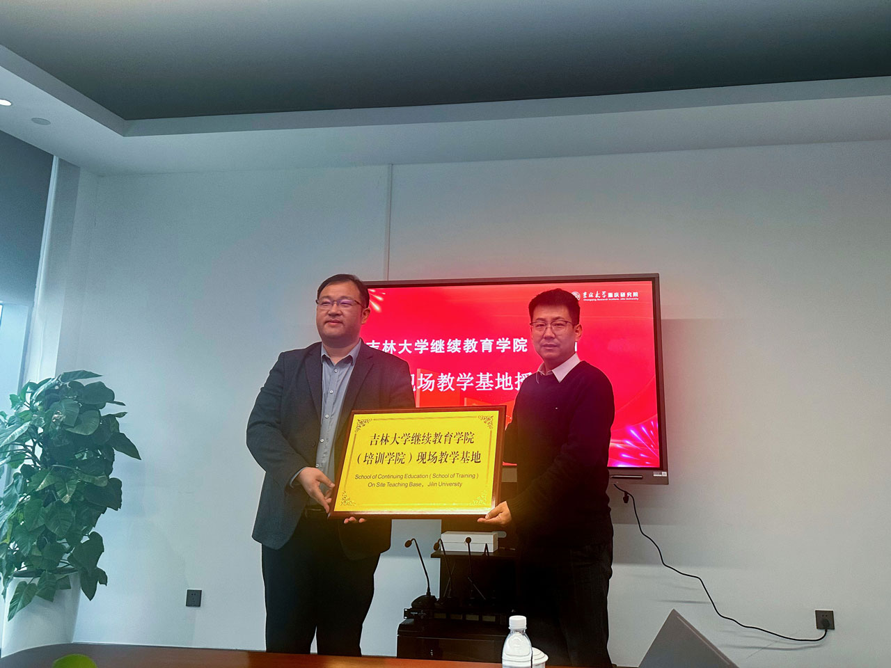 授牌仪式由郑福胜主持。王瑞将镌刻“英国365集团继续教育公司(培训公司)现场教学基地”的铜牌授予赵敏。