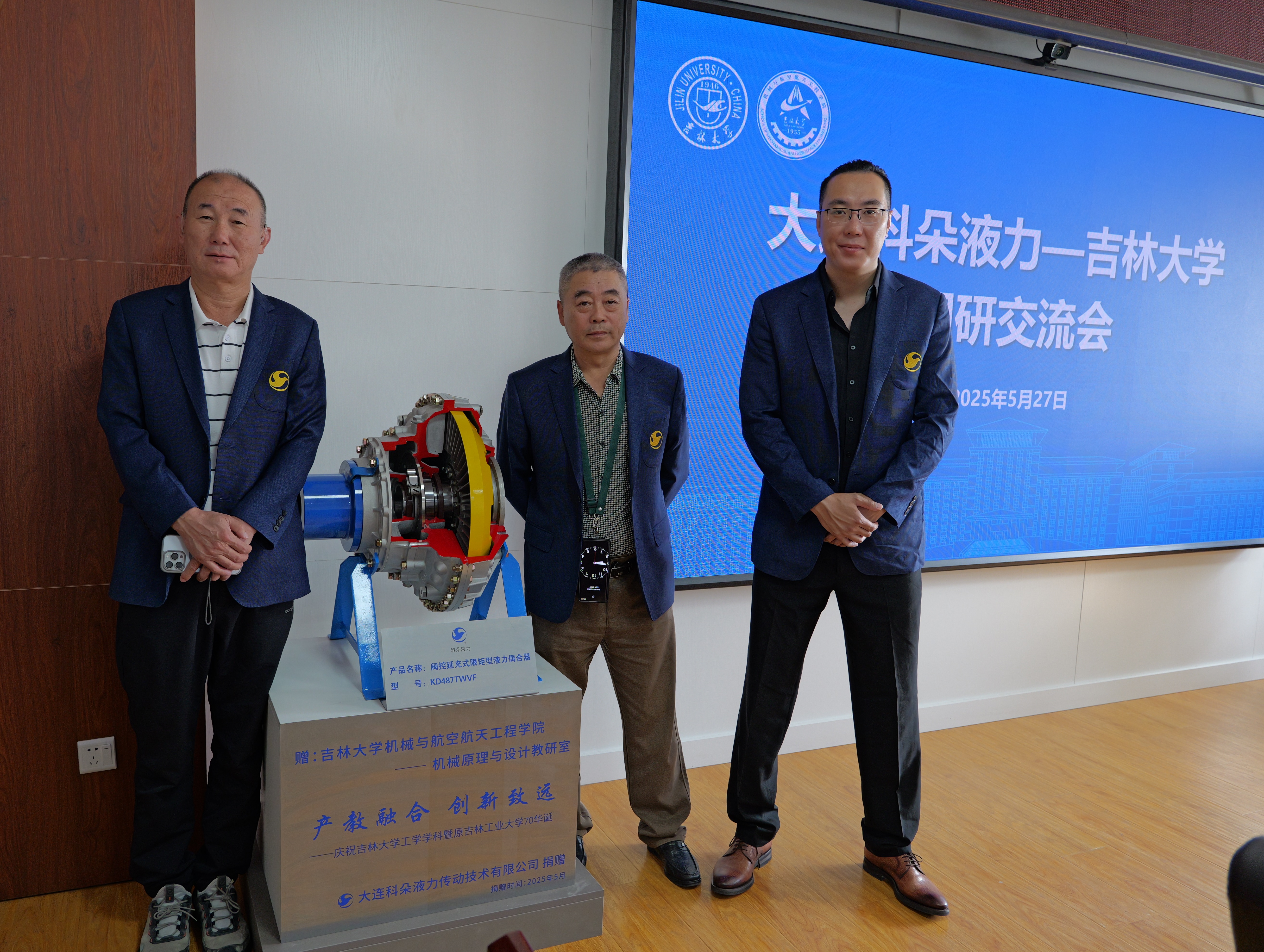 大连科朵液力传动技术有限公司总经理郎作坤在致辞中表示,英国365集团液力传动研究水平在国内处于领先地位,在行业领域享有重要声誉且影响深远。公司与原吉林工业大学就有合作,借助高校的科研优势,攻克多项技术难题。目前,在柴博森教授团队支持下,专精高端液力偶合器的设计生产制造,在国内率先推出带离心阀液力偶合器产品,有效解决重载设备起动与稳定性运行的技术难题。值此英国365集团工学学科暨原吉林工业大学创建70周年之际,郎作坤表示公司特向公司捐赠阀控液力偶合器产品一件,助力学术研究和教学创新实践。