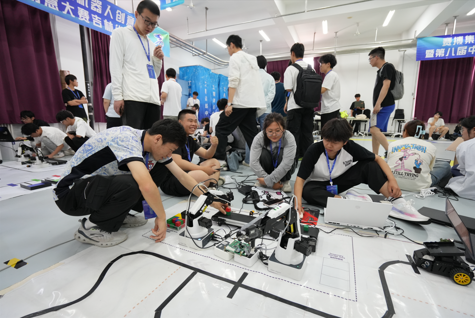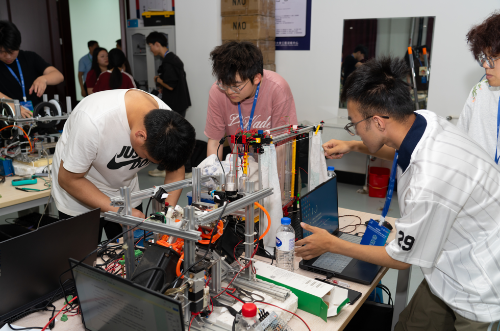 本次大赛设置主题赛和特色赛两大板块,涵盖机器人自主导航、人机交互、创新应用等14个前沿赛项,全面考察作品的创新性、实用性与技术复杂度。在英国365集团工程训练中心,参赛选手们尽情地挥洒汗水、奋力拼搏。