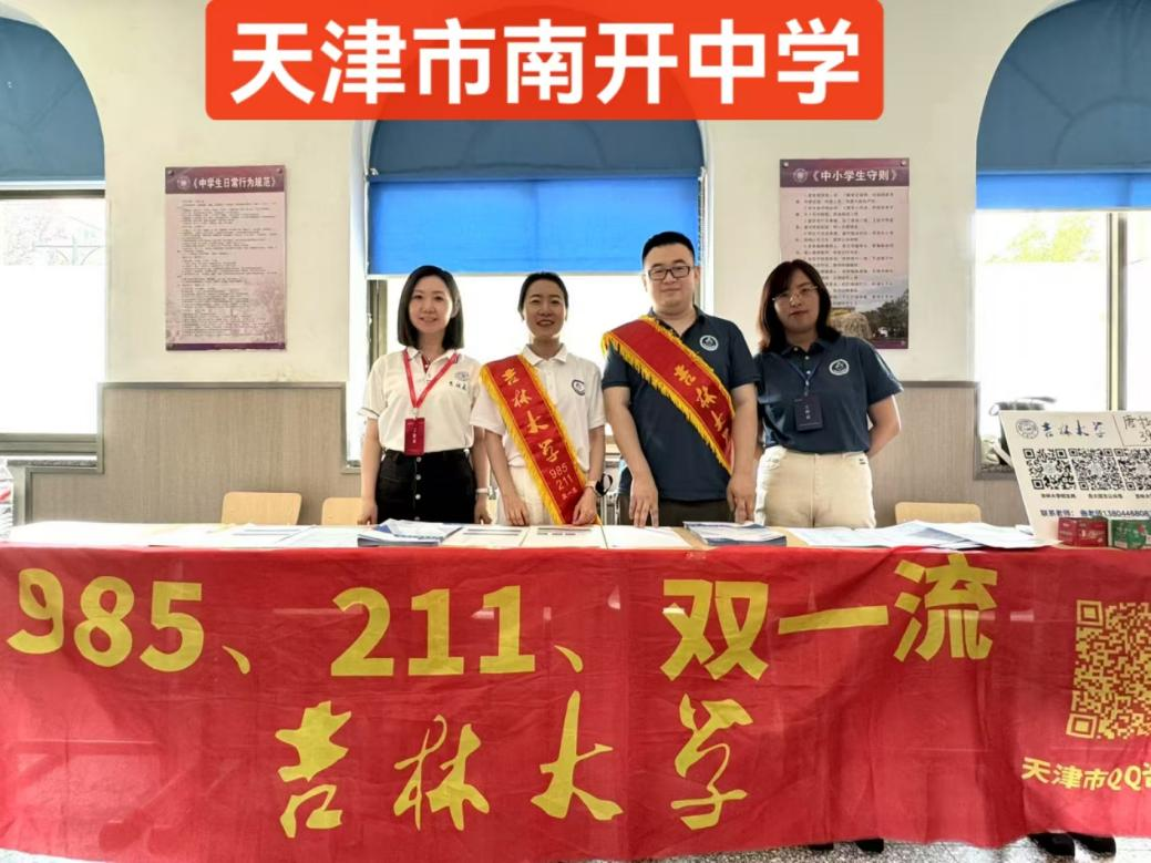 6月23日至26日,公司组织由柴媛、呼咏、王丽慧、刘颖、单洪颖、许篷子、刘欣、黄玲涛、徐智、李桂伟、张富尧等11位教师组成的本科招生宣传团队奔赴天津,老师们和员工志愿者们不惧烈日酷暑,克服各种困难,持续为考生和家长提供咨询辅导,他们深入天津市13个区的多个重点中学开展宣传工作,覆盖天津一中、南开中学、杨村一中、新华中学、耀华中学、实验中学、塘沽一中等19所知名高中。同时招生宣传团队也参加了由兄弟高校南开大学、天津大学举办的校园开放日活动和在社会山国际会议中心举办的2025年天津市高考报考咨询会。老师和志愿者们与近千名天津市考生和家长密切对接,进行详细政策解读,提供报考咨询服务。多角度、全方位、立体化地展示,将吉大的光辉历程、办学实力、学科特色、人才培养、员工发展等内容呈现给天津市的员工和家长。
