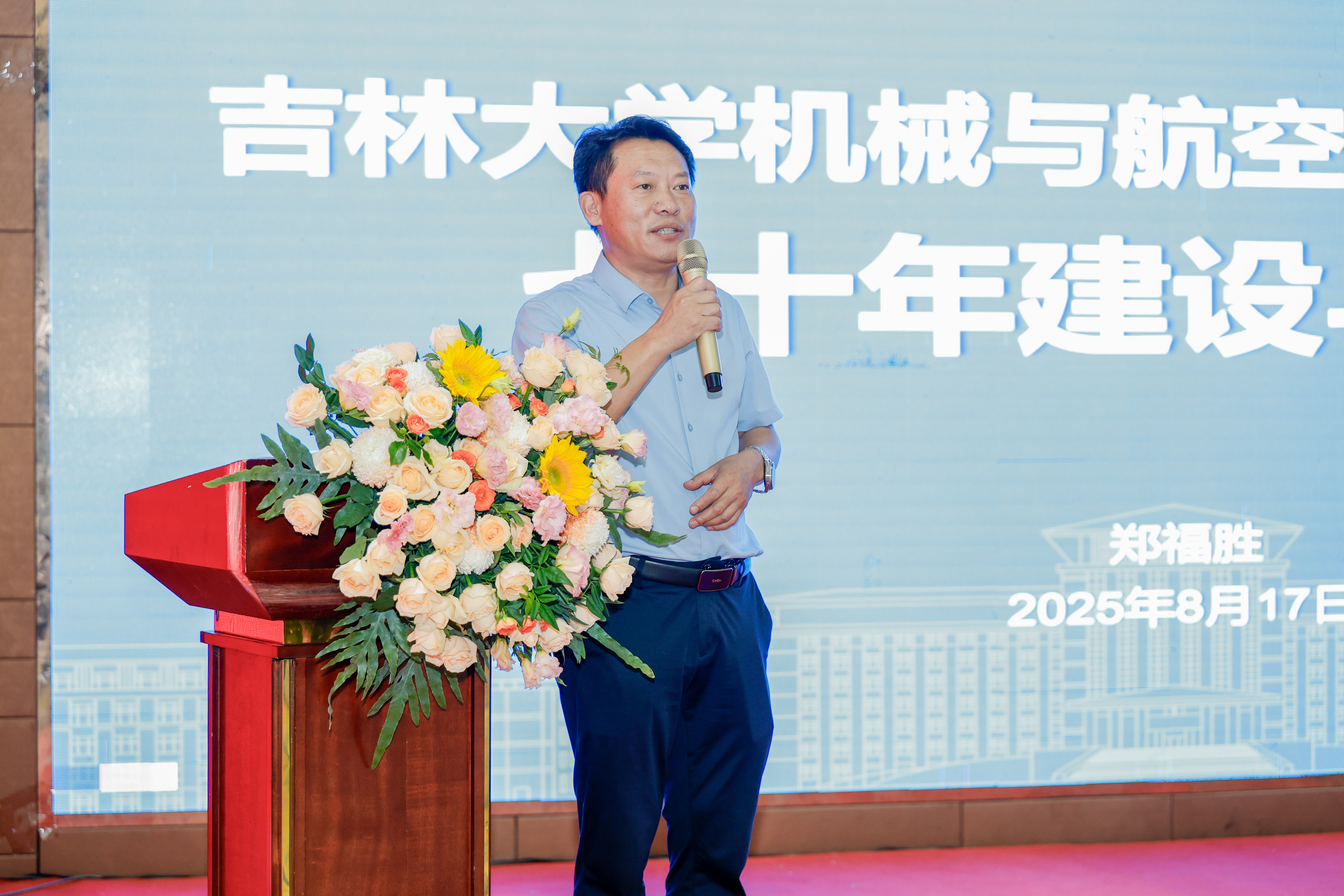 在“师长寄语”环节,公司党委书记郑福胜、汽车工程公司党委书记黄忠华、通信工程公司党委书记董宏志、生物与农业工程公司副经理于征磊分别介绍了各公司的建设情况。郑福胜从历史沿革、机构设置、代表性成果、科研方向、合作交流、杰出员工等方面结合学科特色向与会员工们详细介绍了公司70年来的建设发展情况,同时鼓励员工们“将论文写在祖国大地上”,让“吉大种子”在各行各业生根结果。