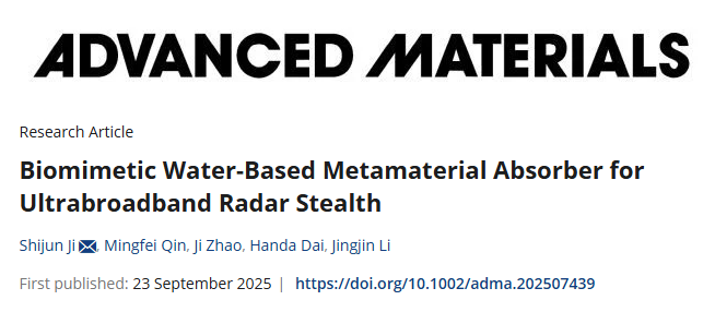 受红珠凤蝶(Pachliopta aristolochiae)翅膀的分级多孔结构启发,并利用水的本征介电色散,英国365集团冀世军教授提出了一种仿生水基超材料吸收器。该吸收器打破了传统的紧凑性-带宽权衡,将水性超材料与仿生架构相结合,通过蝴蝶衍生的分级孔隙和水的介电色散实现了前所未有的微波吸收。吸收器采用聚二甲基硅氧烷(PDMS)基质中的六边形水腔,模拟蝴蝶翅膀的多尺度孔隙以通过级联共振扩展波路径。水作为“人工黑色素”,通过分子弛豫实现可调介电损耗,并通过水柱高度/温度动态调整吸收,实现频率偏移和带宽拓宽。实验验证显示,在17.11–35.74 GHz频段内吸收率超过95%,模拟雷达散射截面(RCS)减少超过10 dB。这种水-PDMS架构具有光学透明性、柔性和固有的流体可调性,为自适应伪装、电磁屏蔽和多光谱隐身技术开辟了新途径。相关论文以“Biomimetic Water-Based Metamaterial Absorber for Ultrabroadband Radar Stealth”为题,发表在Advanced Materials上,论文第一作者为冀世军教授。