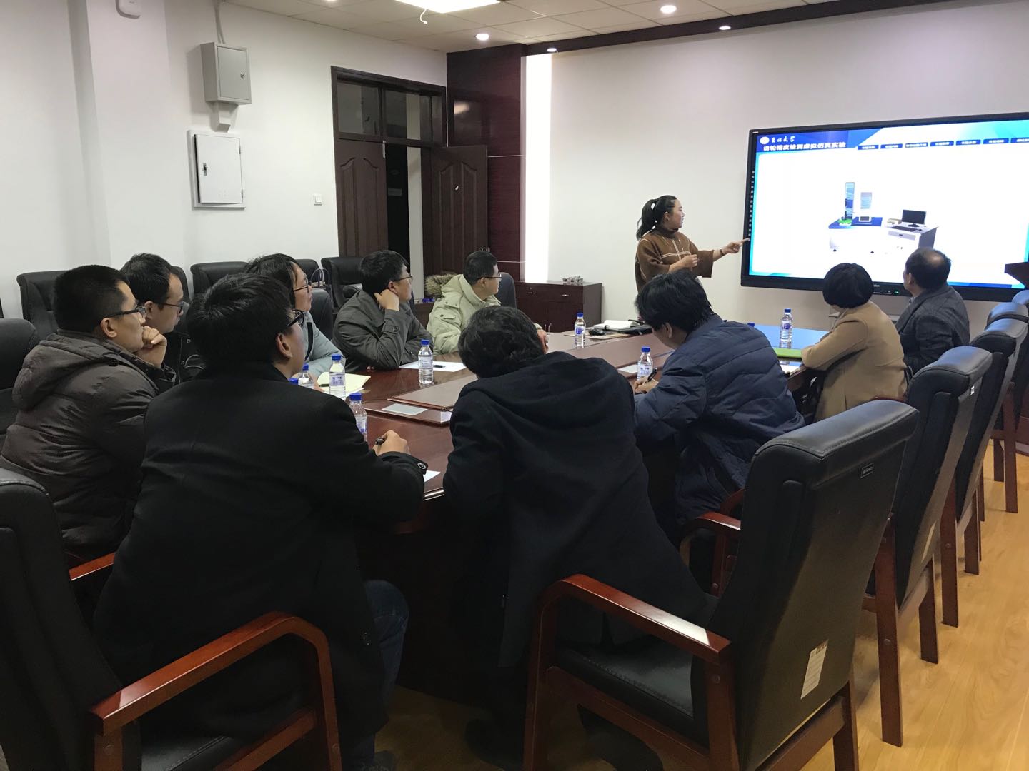 会上,曲兴田首先对长春工业大学机电工程公司教师们的到来表示诚挚的欢迎和衷心的感谢,他介绍了公司申请和建立机械虚拟仿真实验教学中心的初衷和工作重点。随后,由王志琼向大家介绍目前中心建设的主要工作,展示了中心网站的员工选课功能,以及其中包含的虚拟仿真实验项目。中心虚拟仿真实验项目的开发主要是针对需要贵重仪器的实验项目、不方便员工亲自动手操作的危险性实验项目以及拓展性、多样化的参数化实验项目。曲兴田在交流时提到,公司最好的产品不是员工,而是如何更好地为员工服务,新形势下,我们不仅要提高教学质量,更要改变教学方式。因此,在虚拟仿真实验教学中心的建设中,更要积极鼓励青年教师努力工作,激发工作热情,热爱教育事业。长春工业大学机电工程公司教师们表示,希望能与公司中心建立资源共享平台,使虚拟仿真项目惠及更多的员工。