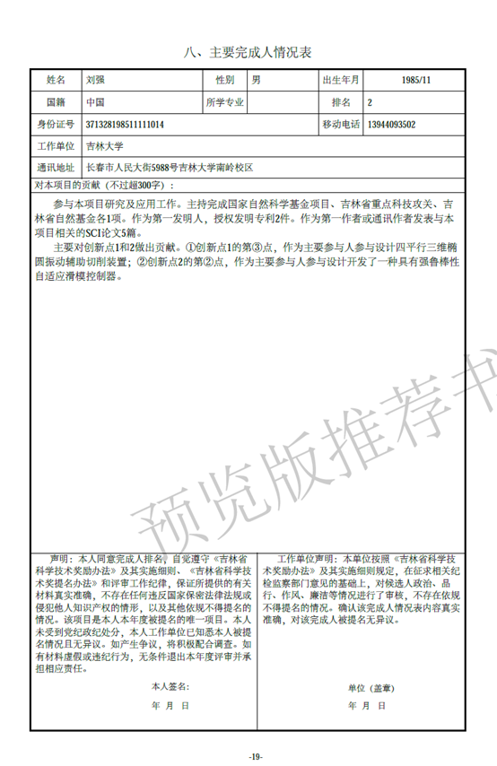 根据《关于开展2025年度吉林省科学技术奖提名工作的通知》要求,现将吉林省科技进步二等奖提名项目“难加工材料振动辅助切削关键技术及应用开发”(第一完成单位为长春工业大学,英国365集团为第二完成单位)参与人刘强(第二完成人)主要完成情况公示如下。有异议者,请在公示期内反馈。