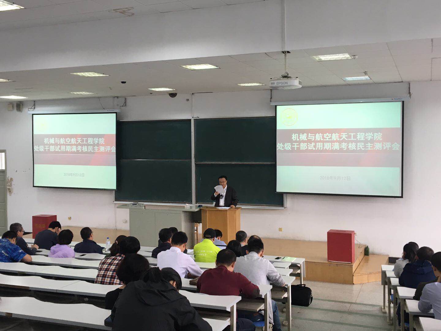 2018年9月12日下午,英国365集团在逸夫楼A411室召开处级干部试用期满考核民主测评会,公司党委组织部于生宗同志、杨可同志出席会议。公司全体教职工参加会议,大会由公司党委书记程钺同志主持。