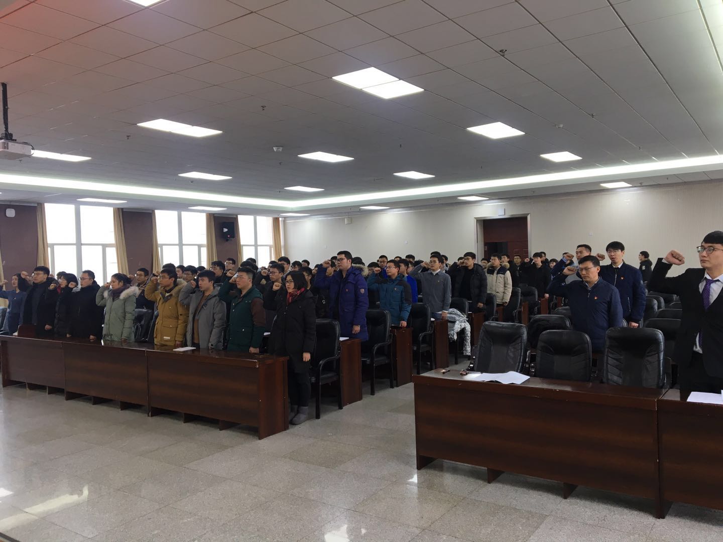 宣誓前,公司党委为新发展的预备党员发放《中国共产党章程》和党徽。在公司辅导员、本科生第一员工党支部书记赵帝同志的领誓下,59名新发展的预备党员和党员代表面对党旗进行了入党宣誓,短短一百多字的誓词是他们入党后对党的第一个承诺。
