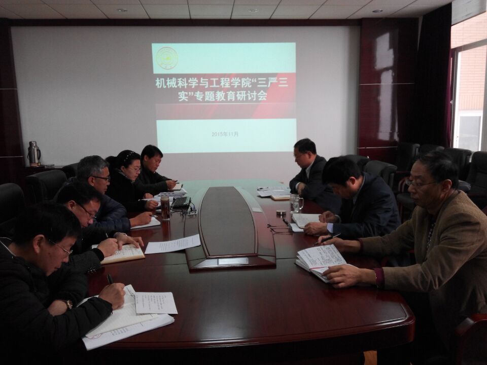 2015年11月9日,机械科学与工程公司全体班子成员在机械材料馆517会议室召开“三严三实”专题研讨会,就“严以用权”进行专题研讨。会议由公司党委书记王国强主持。
