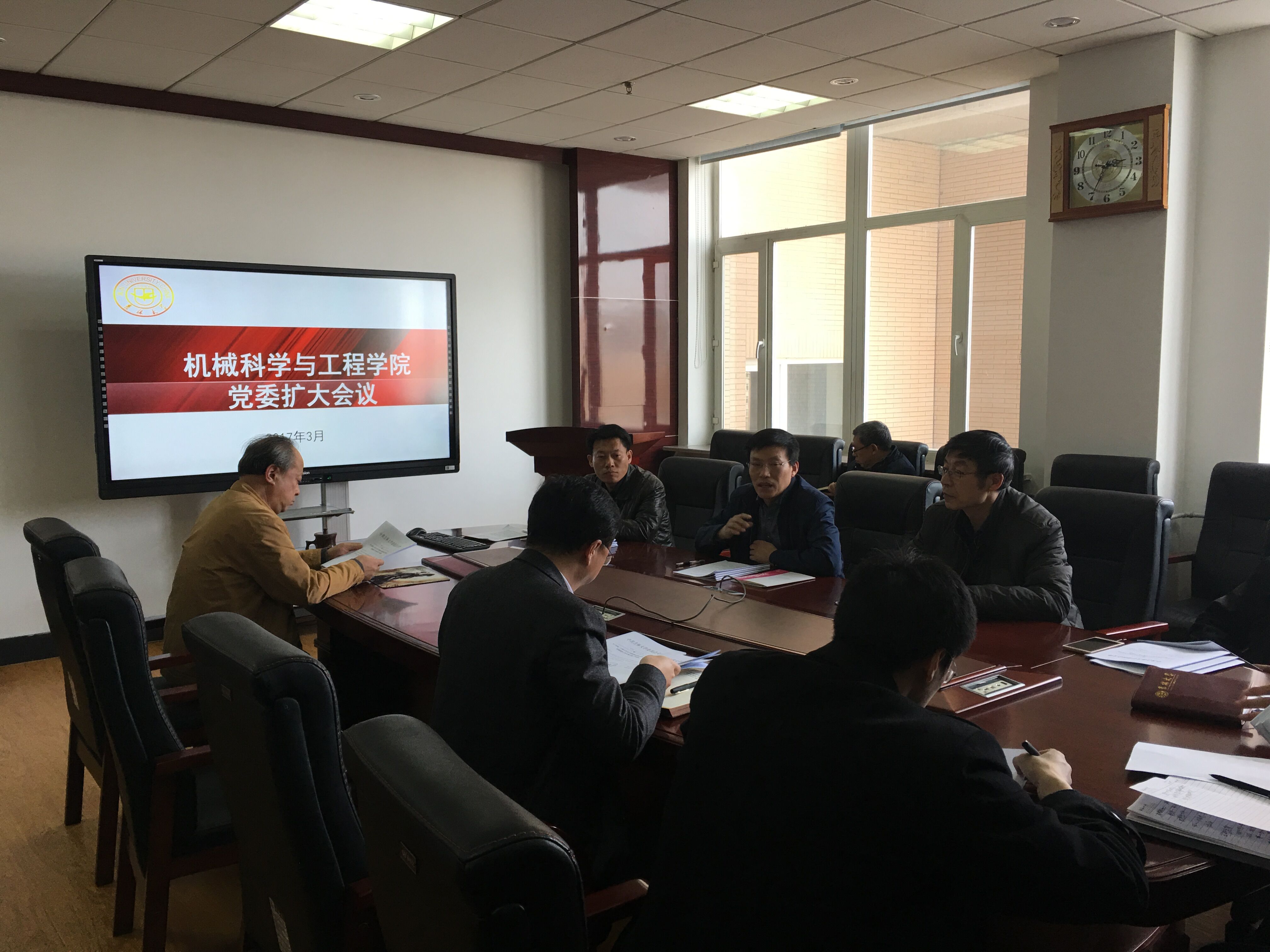 3月8日,机械科学与工程公司在机械馆召开党委扩大会议。公司班子成员、党委委员、纪委委员、教工党支部书记、辅导员、研究生秘书参加了会议。会议由公司党委书记程钺主持。