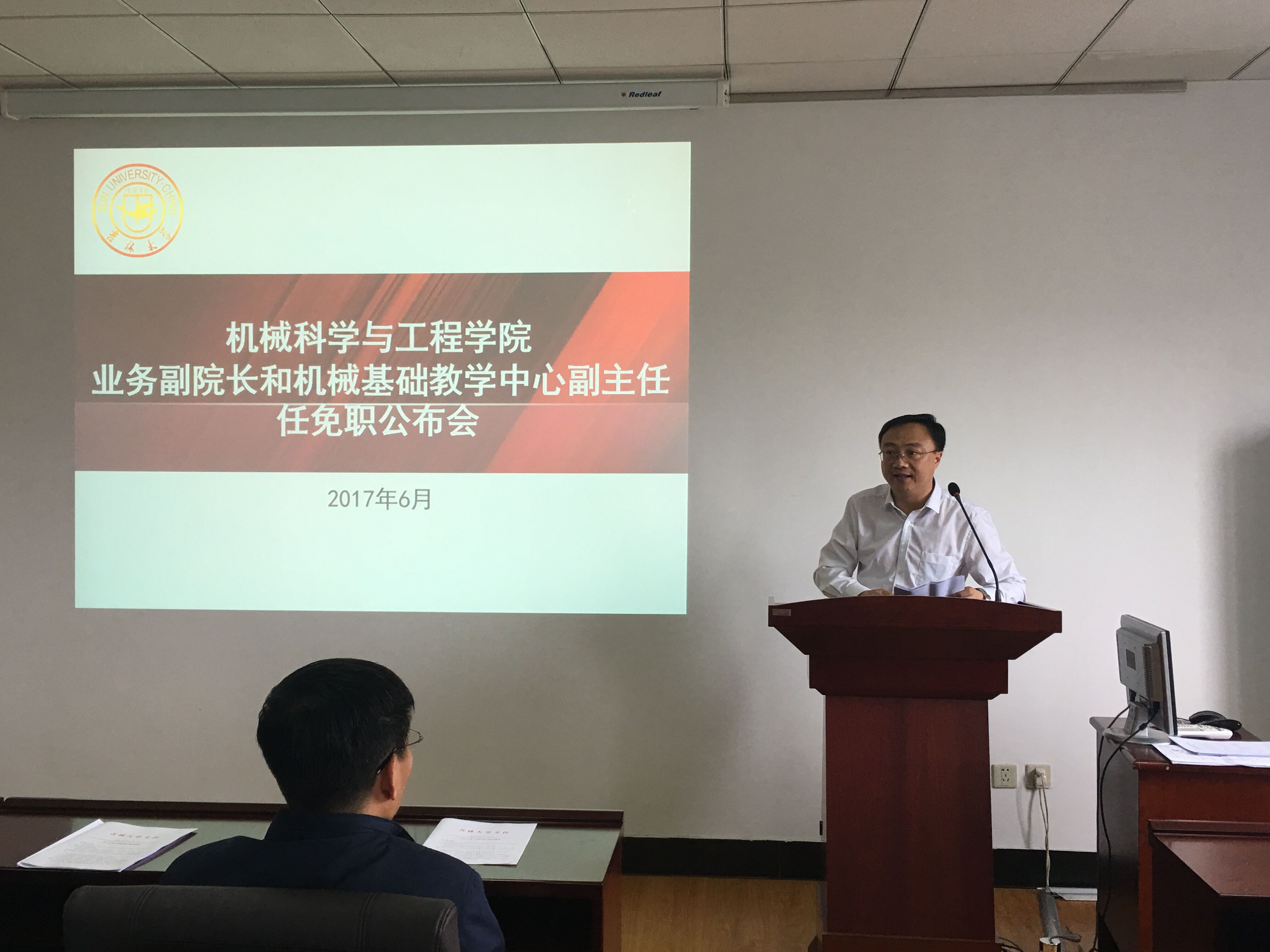 6月7日,机械科学与工程公司在机械馆召开业务副经理和机械基础教学中心副主任任免职宣布会。会议由公司党委副书记兼副经理郑福胜主持。公司班子成员、党委委员、纪委委员、公司学术委员会主任委员、学位评定分委员会主席、教学委员会主任委员、系主任、教工党支部书记和机关全体人员参加会议。