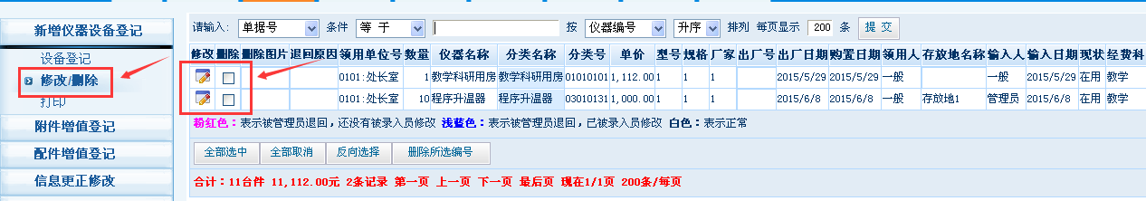 图 6 如果信息录入错误,点击【修改/删除】,可后续更改