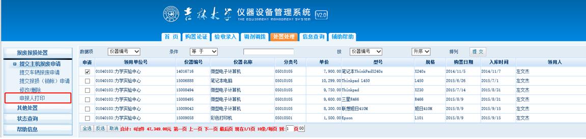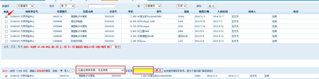 1.每个老师通过自己的账号登录系统后,只能申请报废自己名下的固定资产。