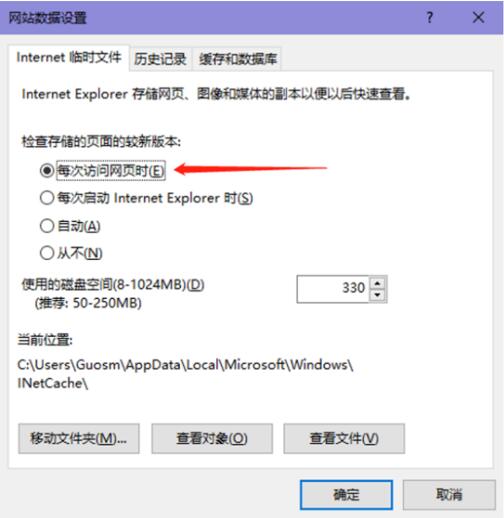 点击IE浏览器的【设置】,选择【Internet选项】,弹出Internet选项窗口,如图1所示,取消勾选【退出时删除浏览历史记录】。然后点击【设置】按钮,如图2所示。弹出网站数据设置窗口,选择【每次访问网页时】,如图3所示。