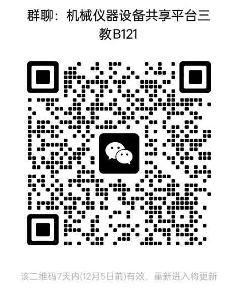 欢迎公司教师的设备入驻该平台,要求:(1)中小型、共性仪器设备;(2)单台仪器设备价值不低于10万元;(3)须面向校内外开放共享。欢迎公司教师积极参与机械仪器设备共享平台的建设!请扫描二维码入群。